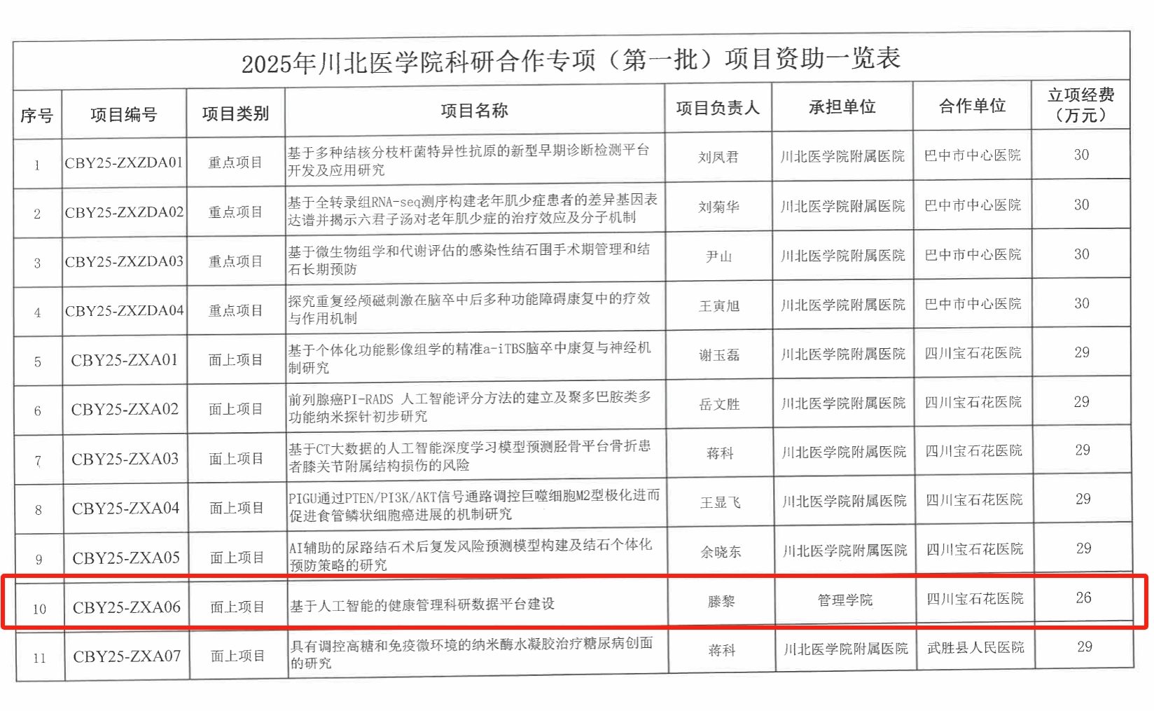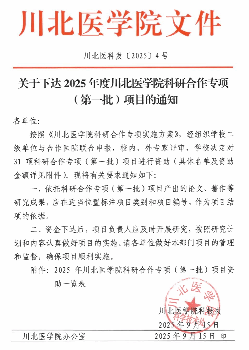 MLIS教育中心老师滕黎、杨雪松获批2025年度川北医学院科研合作专项(第一批)项目。