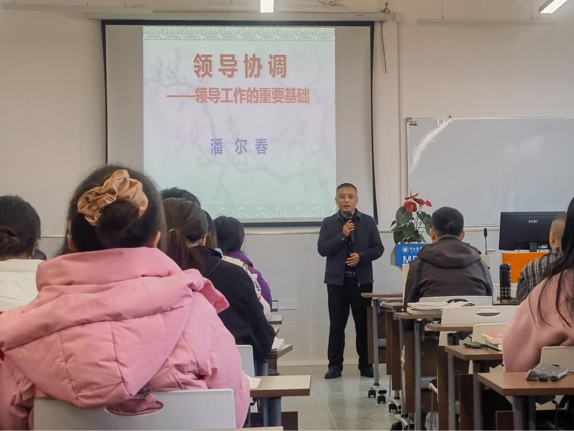 潘尔春以“领导协调——领导工作的重要基础”为主题,结合案例阐释了协调能力在团队管理和跨部门协作等场景中的关键价值、协调原则、过程运用。鼓励同学们在实践中锻炼协调技能。