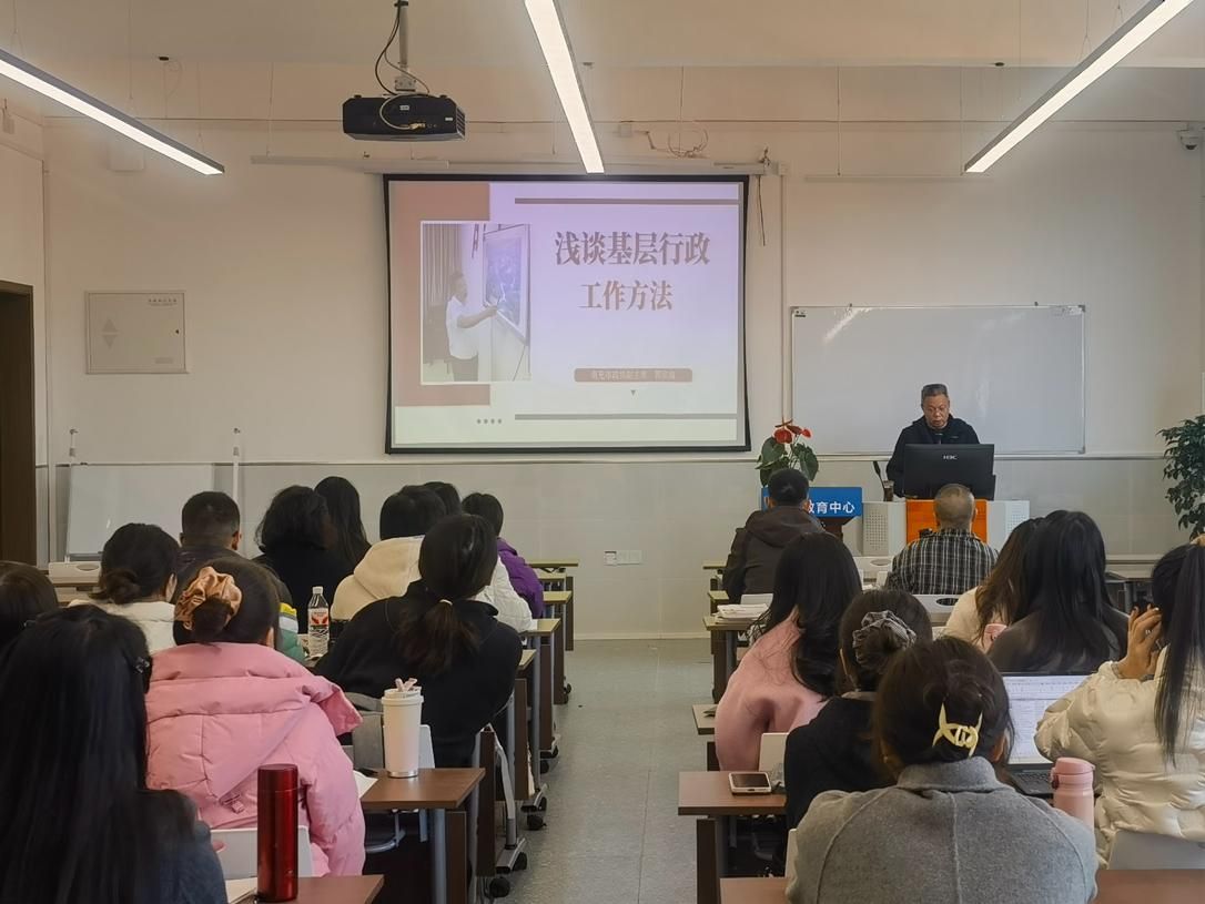 郭宗海以“浅谈基层行政工作方法”为主题,结合自身理论积淀与实践经验,阐述了基层行政工作的基本内涵、常见挑战及基本方法,强调基层工作人员需兼具“同理心”与“执行力”,实现政策执行刚性与柔性的平衡。