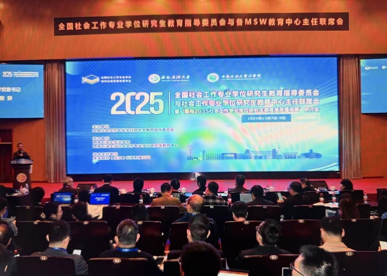2025年11月7—9日,川北医学院管理学院MSW教育中心主任陈静、教学秘书杨宇航前往西南石油大学参加全国社会工作专业学位研究生教育指导委员会与社会工作专业学位研究生教育中心主任联席会暨“面向 2035 社会工作专业学位研究生教育高质量发展”研讨会,本次会议由全国社会工作专业学位研究生教育指导委员会主办,西南石油大学法学院和西南石油大学社会工作专业学位研究生教育中心承办。