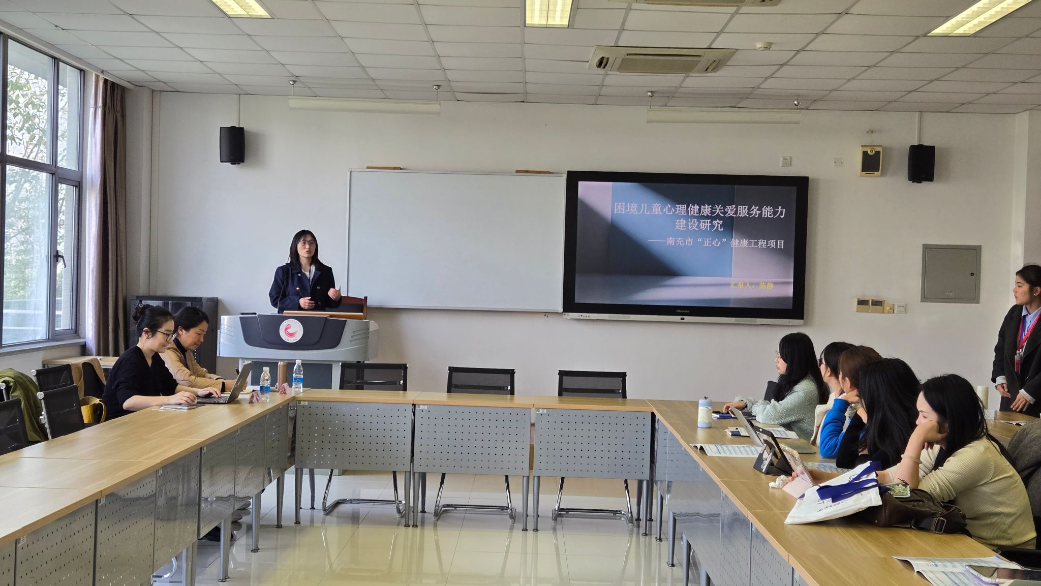 我中心主任陈静老师带领社会工作硕士研究生参与本次学术会议。在“西南地区困境儿童与留守儿童关爱保护服务体系研究”专题论坛上,陈静主任作题为《困境儿童心理健康关爱服务能力建设研究》的学术报告。报告以南充“正心”健康工程项目为实践案例,系统分析了当前困境儿童心理健康服务面临的现实挑战,创新性地构建了以“协同·赋能·精准·发展”为核心的系统化能力建设框架,并详细阐释了“123”实施路径。报告强调,提升服务能力必须强化顶层设计、健全协同机制、注重专业人才发展、增强数字赋能、夯实社区心理服务体系五大关键环节。报告内容扎实、视角前沿,引发了与会者的积极讨论与共鸣。