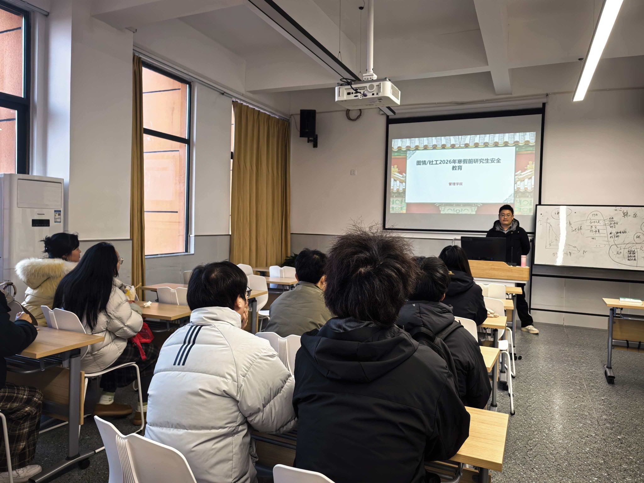 1月5日下午,MLIS和MSW教育中心在甘露书院北304开展了2026年寒假前研究生安全教育班会,MLIS教育中心秘书兼辅导员杨兰、MSW教育中心秘书兼辅导员杨宇航及2025届全体MLIS和MSW研究生参加班会。