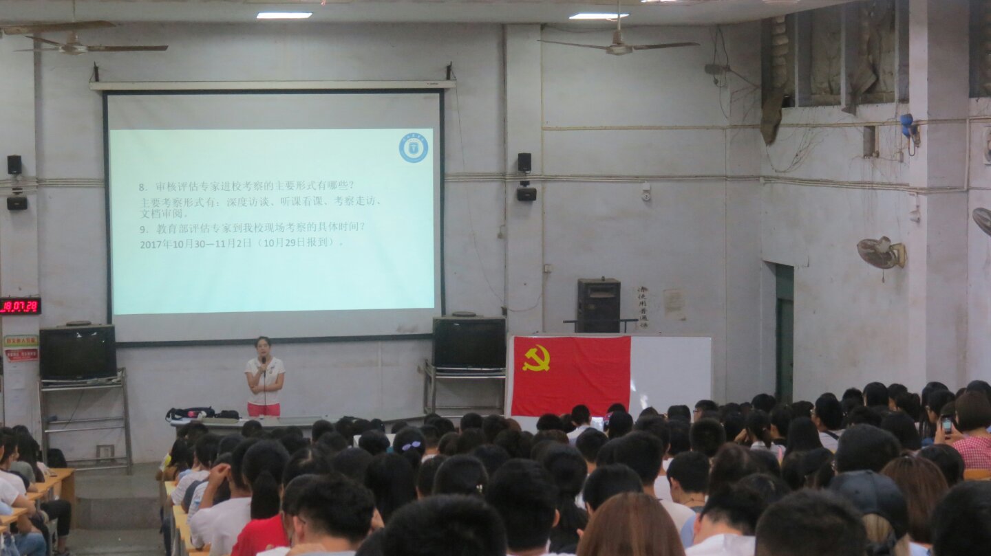 为积极跟进审核评估建设,9月10日下午在周末形势政策课上,由麻醉学系党支部主办的审核评估系列讲座之“迎评在我心,落实于我行”主题讲座,于顺庆校区第十教学室顺利举办,学生辅导员杨洋出席讲座,14级、15级全体麻醉学子落座聆听。