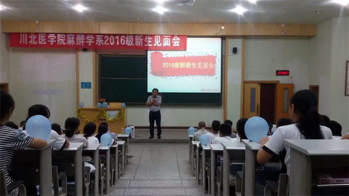 为欢迎2016级麻醉系新生的到来,拓展新生对麻醉专业更深层次的认识,同时鼓舞新生积极投入大学生活,加强良好大学氛围的建设,9月7日19:00,由我系团总支学生会主办的“2016麻醉新生见面会”,在高坪校区南楼103室举办。五系联合党总支副书记兰海涛、麻醉系主任任万勇、副主任杨小霖等出席了此次会议。