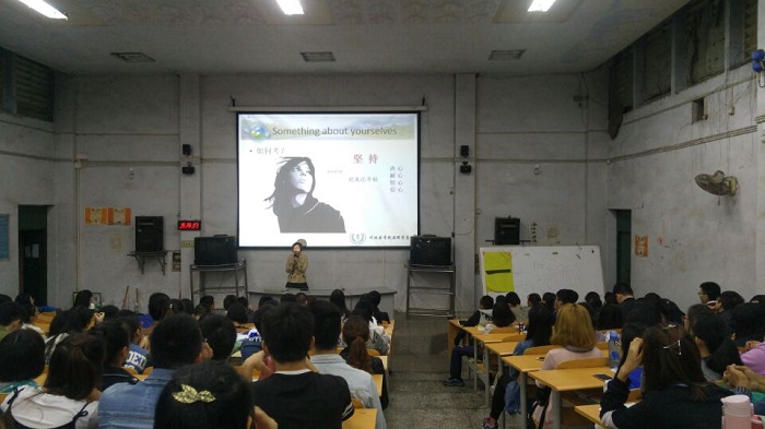 首先,由林菁艳老师给同学们带来以“愿在心中,路在脚下”为主题的演讲。她先向同学们简单介绍了自己;然后,以“考研还是不考研”、“自己的未来应该怎样规划”等一系列问题来引发同学们的深思;接着,她从利于就业、扩大朋友圈、探索未知世界、让自己成为一个有能力的人等方面来回答了“为什么考研”这一问题;最后,她用坚持和“四心”—— 决心、耐心、恒心、信心回答了“如何考研”这个问题。紧接着,赵漾老师介绍了自己的考研经历,并向同学们传授了一些考研方法;随后,她以自己朋友三次考研最终成功的经历来鼓励大家:基础差不是问题,只要有心,就没有什么事是做不到的;接下来,她回答了同学们关于考研的各种疑问,使现场气氛一度活跃。