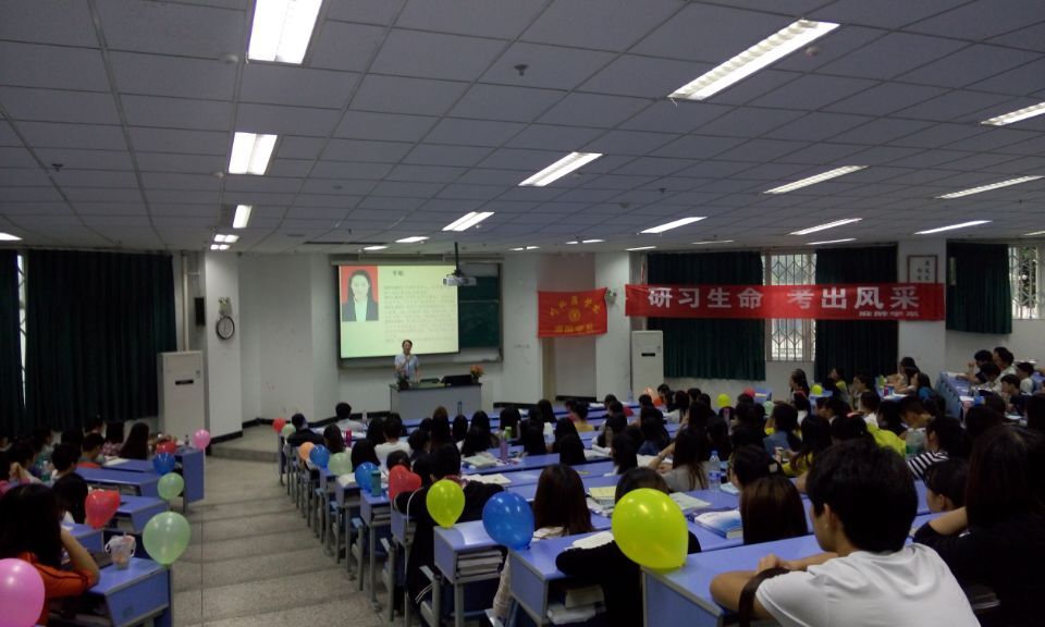 讲座在一片欢腾的掌声中拉开了帷幕。首先,作为一名以372分高分考取华西麻醉学研究生的考研成功者,辛娟讲述了自身的考研之路和个人的成功经验,并举例分析了各科的复习方式;同时,她还介绍了自己“1、2、4、6”四遍重复复习方法;“只要有恒心、自信,坚信考上的那个人就是你”,这就是她考研的制胜法宝,并且辛娟还勉励大家,只要坚持不懈、刻苦钻研,就定能取得意想不到的成绩。随后,同样是华西麻醉学硕士研究生的钱朵也分享了他的考研经历。他提到,从个人实际出发,树立远大目标,有助于取得理想的结果;同时,他还告诫大家,注意平衡考研和实习,不要顾此失彼。而后,他又从自己考取研究生时的经验,简要的介绍了复试时笔试、面试的有关情况和需要注意的有关事项。为了激励大家,钱朵还以华西研究生为例,详细地讲述了研究生的生活与学习,以及考研所具有的优势等。最后,面对同学们提出的“科研与专研”区别等问题,他们都做出了详细解答,并为部分同学列举了复试所需准备的资料及考点,让大家对于考研的相关知识有了更深的了解。最终,一曲《海阔天空》为本次讲座画上了圆满句号。