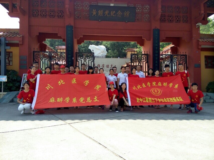 为迎接建党100周年及抗战胜利70周年的来临,加深大学生对红色革命的理解,川北医学院麻醉学系2015年赴中江“三下乡”社会实践服务队于7月16日上午参观了黄继光英雄纪念馆,并开展了“纪念革命先烈黄继光”特别活动。