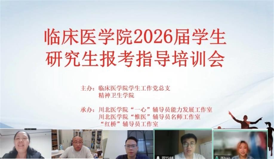 为加强学风建设,科学引导2026届毕业生了解考研现状,把握考研政策,明确考研方向,增强考研信心,9月29日晚8点,临床医学院学生工作党总支与精神卫生学院联合开展2026届学生研究生报考线上指导培训会。