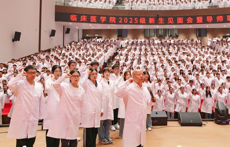 此次大会,不仅帮助新生能更好地把握专业发展方向,增强专业认同,为学业规划提供清晰的指引;更是通过白袍加身和宣誓仪式,让新生更加深刻体会到医学职业的责任与荣光;同时,科研导师与班主任队伍建设的高度重视,更为学生的学业发展、科研探索、生活适应和成长成才提供了坚实支撑。