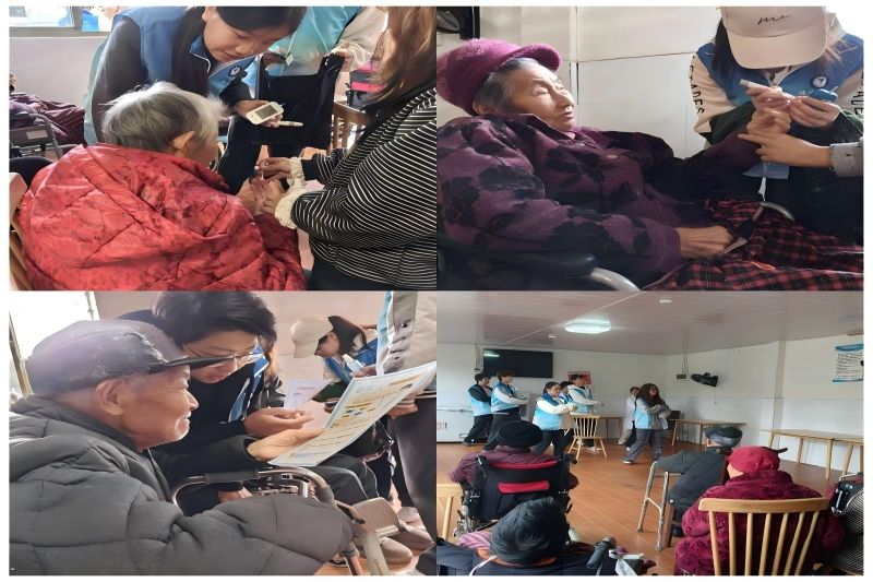活动现场,身着蓝色马甲的志愿者有序开展血糖检测、健康问诊等服务,细致记录健康数据,用通俗语言解读报告,围绕秋冬饮食搭配、运动节律、血糖监测及慢性病防控等内容科普健康知识。文艺汇演环节,舞蹈、歌唱、戏曲、乐器合奏等节目轮番上演,精彩纷呈,台下老人掌声不断,现场氛围热烈温馨,健康小游戏与知识问答环节让老人与志愿者在欢笑中拉近距离,为养老院增添满满活力。