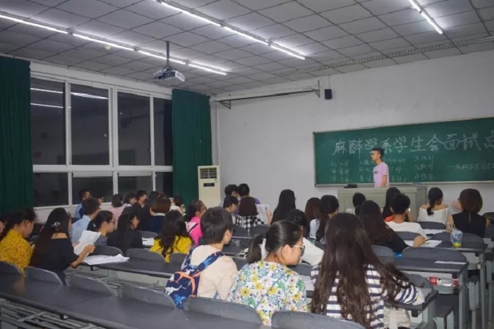 9月16日晚,麻醉学系学生会招新面试工作在图书信息大楼203教室如期举行。学生会主席团、各部门部长及副部长担任面试评委。