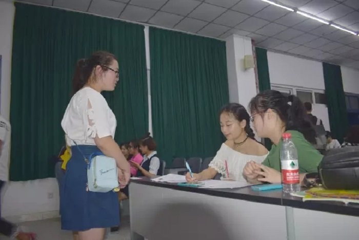 随后,面试工作正式展开。学生会本着“公开、公平、公正”的原则,采用结构式面试法纳新,希望运用特定的问题、评价方法和评价标准,遵循特定程序,通过与面试者的言语交流,对面试者进行标准的评价和选择。新生们耐心排队等待,面试现场井然有序。参与面试的同学纷纷做了自我介绍,或积极开朗,或紧张忧虑。提问环节中,新生认真回答评委提出的问题,与面试官们亲切沟通与交流。其间,有的同学们慷慨陈词、仪态端庄,也有同学张口结舌、轻率浮躁,不尽相同。有的面试者结合自身优势,表达了自己对部门工作的展望以及未来要致力服务和发展部门的决心;还有些同学在面试现场施展了自己的才能,获得评委们的赞赏和掌声。