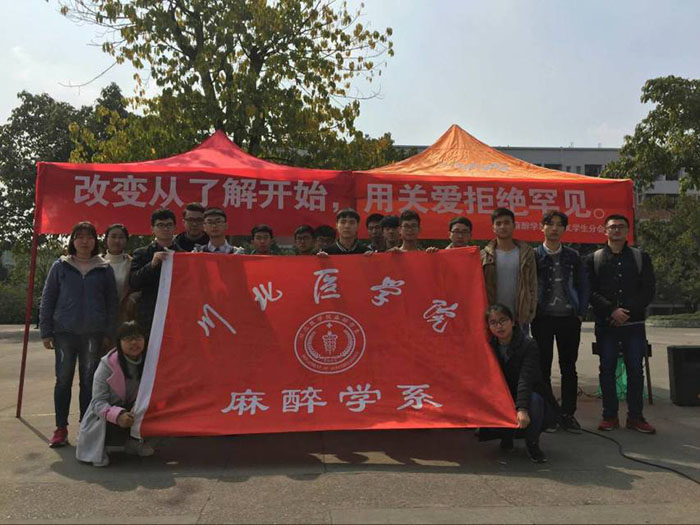 为加强我校学生对国际罕见病的认识,响应世界罕见病日的号召,2月28日中午,由麻醉学系团总支及学生会主办、科研部承办的以“改变从了解开始,用关爱拒绝改变”为主题的宣传活动在高坪校区瑞园门口顺利开展。
