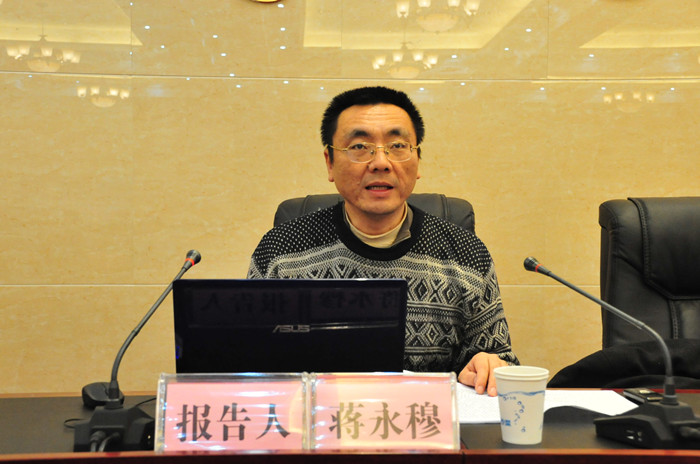 报告会上,蒋永穆着重从“十八大报告的主题和历史性贡献”、“十年基本总结,科学发展观的历史地位”、“夺取中国特色社会主义新胜利”和“十八大热点解析”等四个方面,对一系列重大问题进行了系统、深入的宣讲阐述,并对十八大的新思想、新观点、新举措和新要求作了详细分析和解读。他希望大家认真学习领会党的十八大精神,把思想统一到党的十八大精神上来,把力量凝聚到实现十八大确定的各项任务上来,进一步坚定中国特色社会主义的道路自信、理论自信和制度自信,自信小康社会一定能如期完成,自信社会主义现代化中国一定能卓立于世界东方,自信中华民族伟大复兴梦一定能实现。