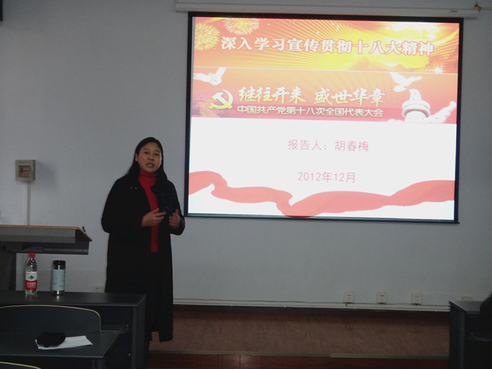 学习会上,胡春梅以精美的课件和详实丰富的事例,从党的十八大报告的主题、十八大报告中蕴含的新意等方面作了解读。与会党员同志纷纷表示,通过此次宣讲更加明确了十八大报告的重要意义,各支部将认真组织广大党员掀起学习党的十八大报告精神的热潮,不断促进自身在思想、学习、工作上的进步。