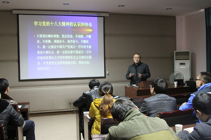 11月29日下午,基础医学院党总支组织全体党员学习党的十八大精神。学院党委常委、副院长杜勇出席并作宣讲报告。