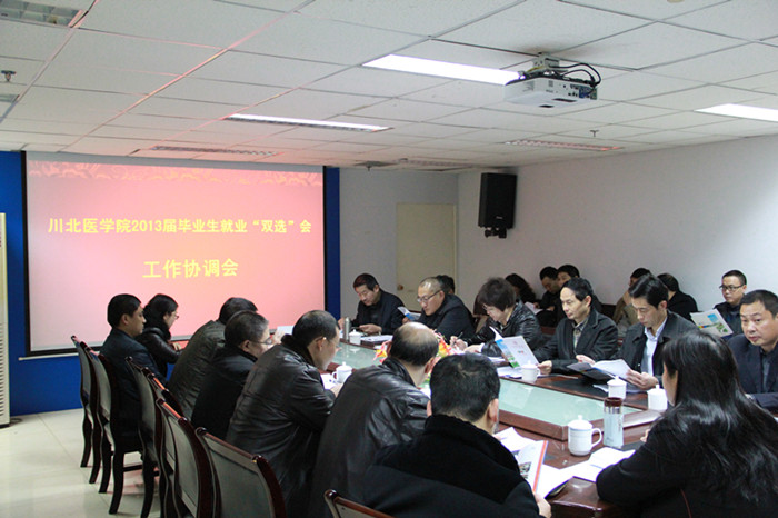 11月12日下午,2013届毕业生冬季大型就业“双选”会工作协调会在顺庆校区招生就业处会议室召开。党委副书记、院长康健,党委副书记李成军,副院长李健、杜勇出席协调会。协调会由副院长雷军主持。