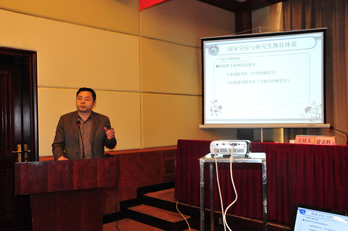 周京国在《直面挑战、抢抓机遇、力促研究生教育工作再上新台阶》的报告中详细阐述了国家学位与研究生教育体系以及国家研究生教育的新动向,并对我校研究生教育的现状、机遇与挑战作了说明。