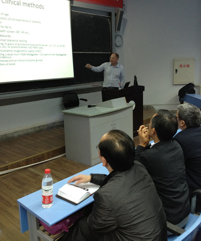 11月5日下午,新西兰奥克兰大学教授Greg Smith博士应邀来校做学术交流,为我校师生作了题为《抗精神药物对糖尿病的影响》的学术讲座。讲座中,Greg Smith教授就糖尿病的前沿发展的科研方法、精神病药物与糖尿病的代谢关系及减肥手术治疗糖尿病等问题作深入浅出的讲解,并与现场师生进行了互动交流。讲座结束后,Greg Smith博士到我校附属医院进行参观考察。