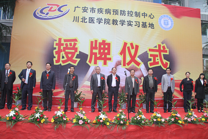 仪式上,广安市疾病预防控制中心主任高山在讲话中表示,市疾控中心在川北医学院的指导和帮助下,借助其独特的学术优势,按照教学实习基地的标准和要求,进一步加强建设,通过双方合作,强强联手,优势互补,实现产、学、研相结合,进一步发展双方教学、科研、技术交流、人才培养等多方面的协作合作,共同为疾控事业的发展贡献力量。
