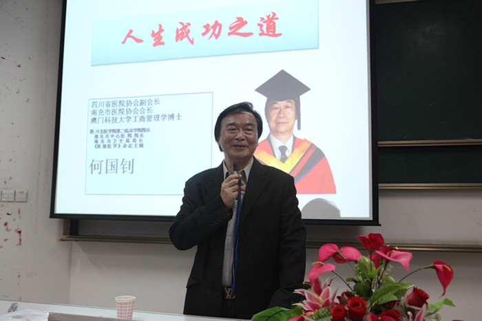 11月7日晚,澳门科技大学工商管理学博士、 四川省医院协会副会长、南充市医院协会会长、我校校友何国钊来校作了题为《人生成功之道》的人文素质教育专题讲座。