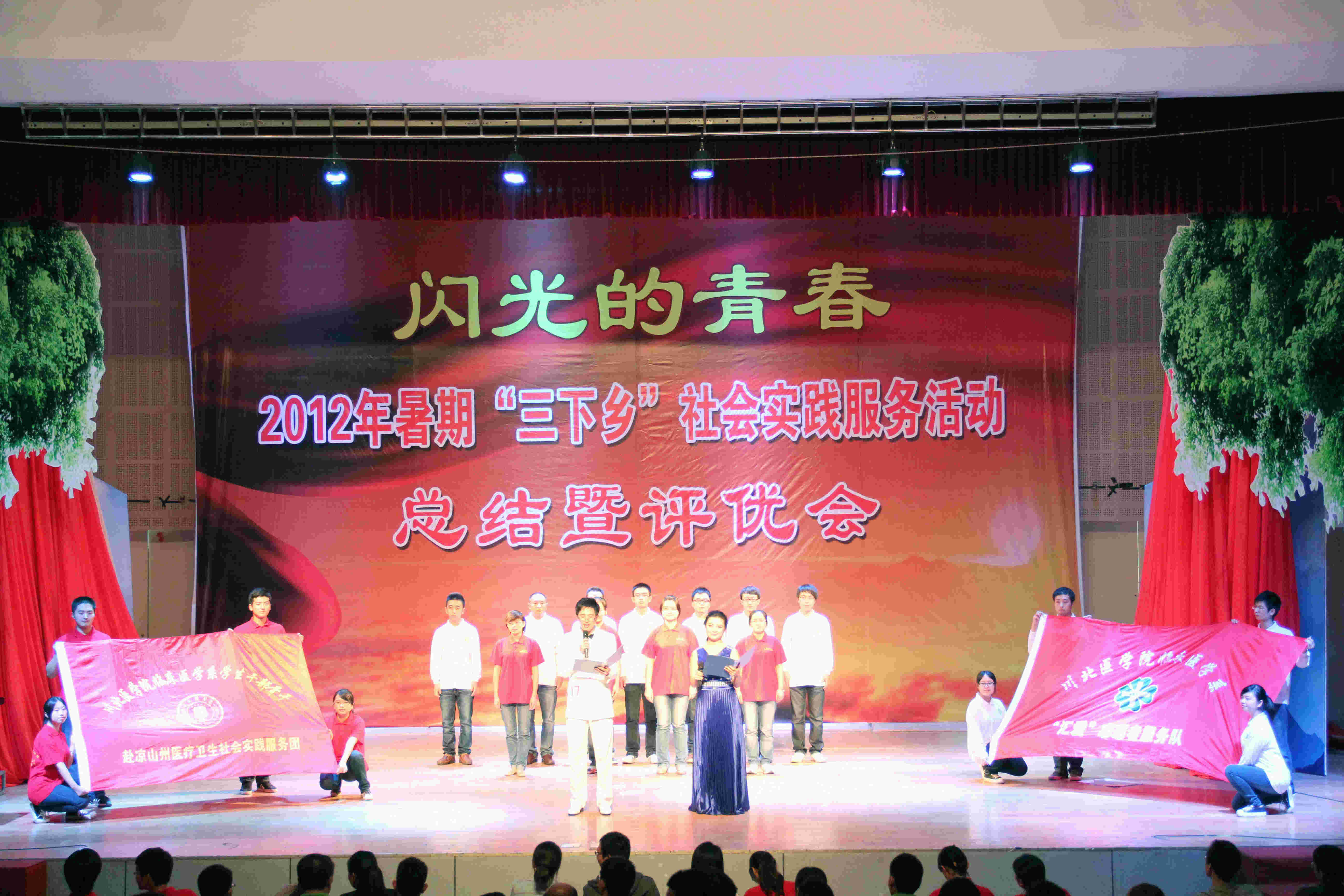 日前,我校2012年暑期三下乡社会实践活动团队评优大会在学校世纪礼堂隆重举行。评优大会由校团委主办。校党委宣传统战部、校工会、学生处、教务处、各学生党总支等相关部门负责人出席大会并担任评委。