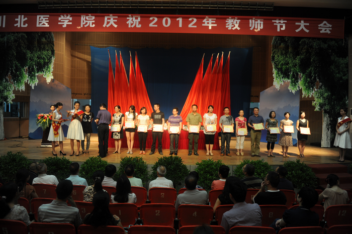 在欢快的乐曲声中,学校领导分别为2012年“三育人”先进集体、“三育人”先进个人及师德标兵颁奖。