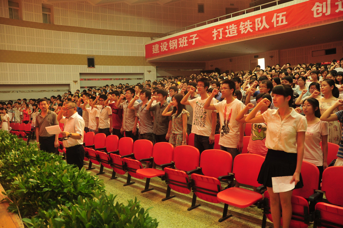 大会上,在雷军的监誓下,杜勇带领全体新党员面对党旗、党徽,庄严宣誓。周京国宣读《关于表彰第九届“百名优秀学生党员”的决定》和《关于表彰创先争优先进集体和优秀个人的决定》。在欢快的乐曲声中,康健等为先进基层党组织、优秀党务工作者和优秀共产党员代表颁奖。创先争优先进集体代表、优秀学生党员代表和新党员代表先后发言。