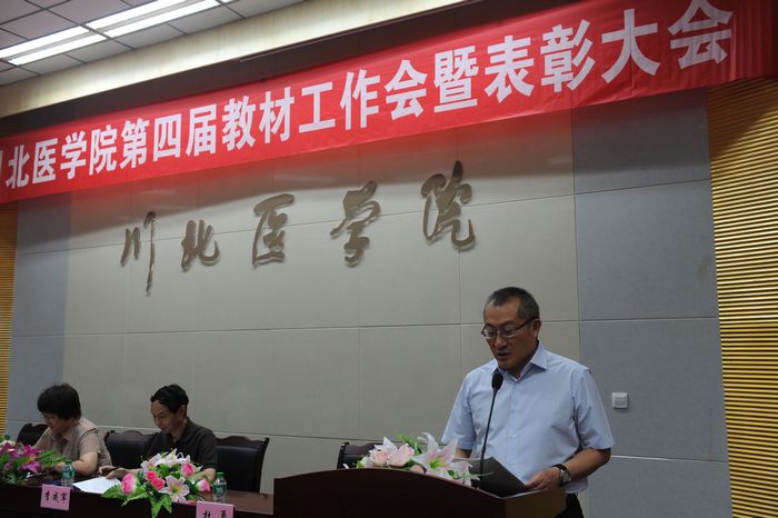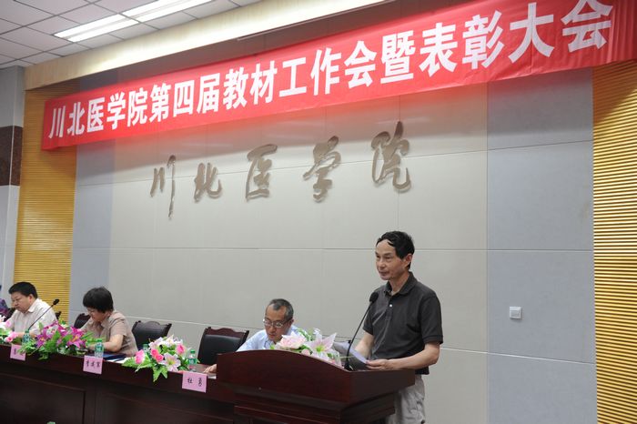 杜勇围绕我校教材建设工作作了“以本科教学质量工程为抓手,全面推进‘十二五’规划教材建设”的主题报告。报告全面总结了过去三年教材建设工作取得的成绩和经验,分析了当前教材建设工作面临的形势和任务,规划部署了未来三年的教材建设工作。李成军宣读《关于调整川北医学院教材建设工作委员会的通知》、《关于公布2010-2012年优秀教材评选结果的通知》,教务处处长李春平宣读了《川北医学院立项资助出版教材管理办法》。获奖教师代表谭榜宪、杨正伟在会上做了发言,结合自身经历交流了教材编写工作的经验。李国红代表科学出版社讲话,对学校“十二五”期间教材编写给予了指导性的意见。
