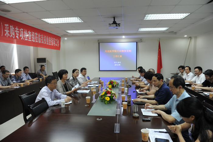 6月14日下午,四川省高校纪检监察工作第四协作组组长刘滨一行四人来校检查大宗物资(设备)采购工作。党委副书记、院长康健,党委副书记、纪委书记李成军,副院长杜勇出席汇报会。