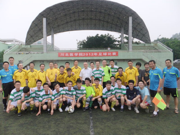 近日,历时一个多月的学校2012年校园足球比赛落下帷幕。本次比赛共有23支队伍参加,包括学校代表队,附属医院代表队、附属南充市中心医院代表队三支教职工队伍。决赛在教职工队与2009级二合班之间展开,经过90分钟激战,最终教工队以5:0战胜2009级二合班,教职工的此次夺冠是继夺得南充市业余足球联赛的又一桂冠,实现本年度 “双冠王”。2009级二合班荣获学生队第一名;2008级三合班获得第二名;2010级四合班荣获第三名。