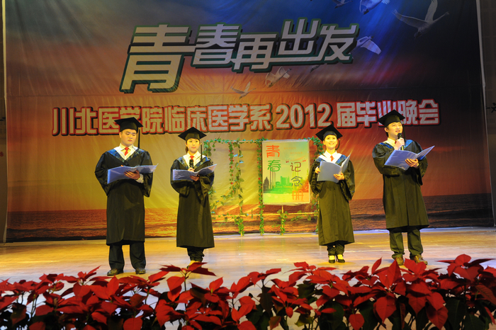 寒窗苦读终成才,母校恩情深似海。6月19日晚,由临床医学系党总支主办的“青春再出发”临床医学系2012届毕业晚会在世纪会堂举行。党委副书记、院长康健,党委副书记李成军、鄢佳程,副院长杜勇,组织部、宣传统战部、人事处、学生处、教务处及各院(系)负责人与临床医学系2012届毕业生一起观看了晚会。