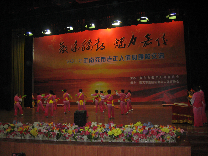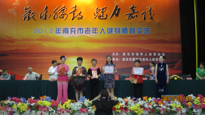 5月8日至9日,在2012年南充市老年人健身腰鼓交流活动中,由我校15名离退休老同志组成的参赛队伍代表南充高校腰鼓队先后参加了腰鼓规定套路和自编套路交流活动,荣获“体育道德风尚集体奖”和规定套路、自编套路2项赛事的“集体优秀奖”,朱淑华老师获得“个人体育道德风尚奖”。