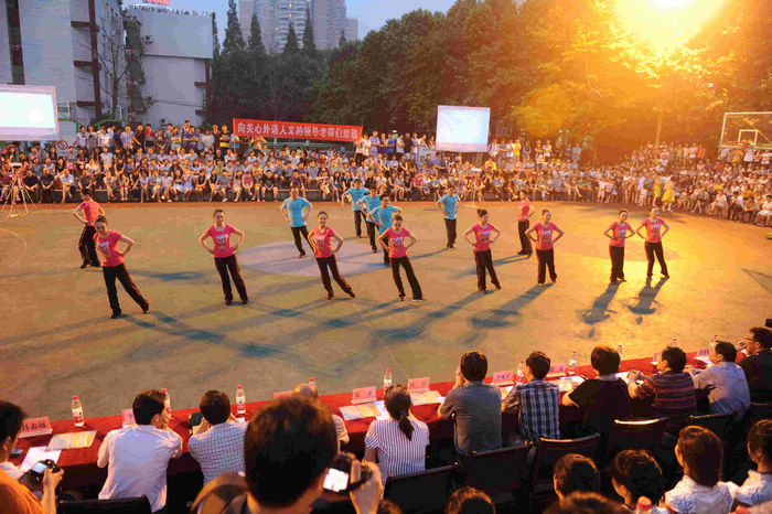 为进一步推动全民健身运动,丰富教职工的文体活动,5月9日晚,由学校党委主办、宣传统战部和校工会承办的首届教职工排舞比赛在顺庆校区灯光球场举行。校领导康健、李成军、李健、雷军、张小明和各职能部门负责人及广大师生观看了比赛。