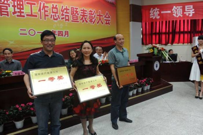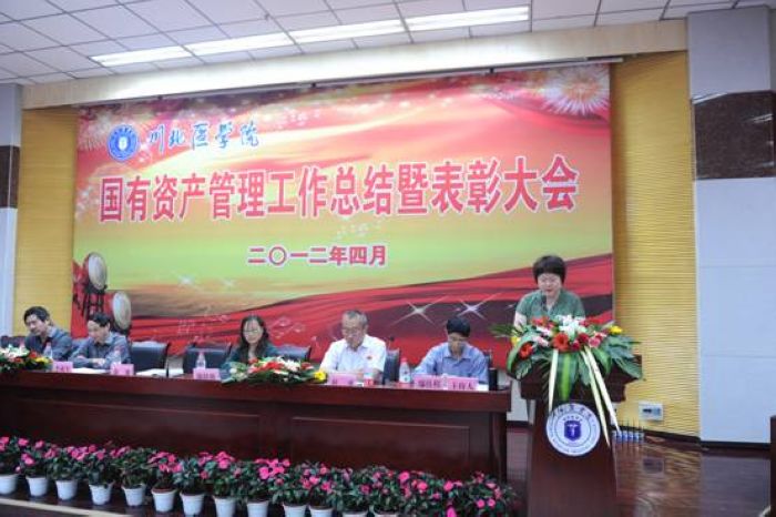 党委副书记李成军宣读了《关于调整川北医学院国有资产管理委员会成员的通知》和《关于表彰国有资产管理工作先进集体和先进个人的通知》。省教育厅领导和学校领导一起向先进集体、先进个人颁发了奖状和获奖证书。