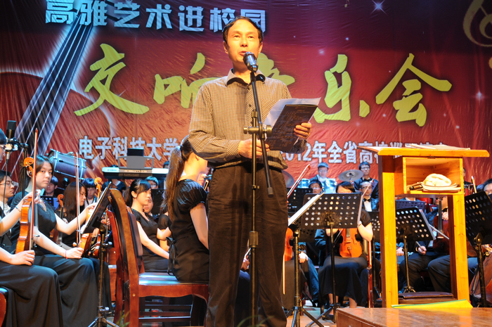 李成军代表学校致欢迎辞,对电子科技大学交响乐团来校演出表示诚挚的欢迎和由衷的感谢。李成军表示,文化启迪智慧,艺术陶冶情操,强调“高雅艺术进校园”活动的开展不仅为全校师生搭建了一个接触艺术、亲近艺术、提升艺术素养、感受艺术魅力的平台,同时也对营造健康向上的文化氛围,塑造大学生的健全人格,提升大学生文化素质,促进大学生全面发展发挥了重要作用。