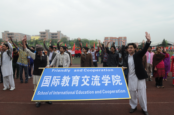 国际教育交流学院代表队由来自尼泊尔、印度、加纳、巴基斯坦的留学生组成,秉着拼搏的精神,快乐的迎接此次运动会。他们以不同的肤色、不同的文化、同样的热情参与其中,以最简单的加油方式----“go go go”喊出心中的激情。