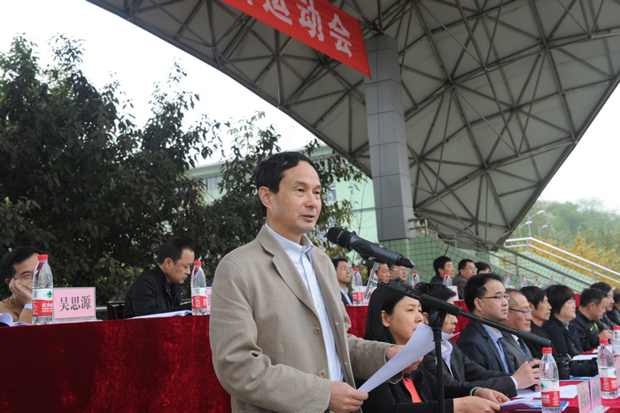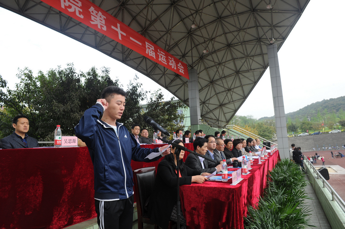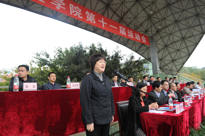 副院长、校体育委员会主任杜勇作讲话。他对运动会的召开表示热烈的祝贺。他说,体育活动是大学生素质教育的基础,每两年一届举办的田径运动会,是我校推进大学生素质教育,推动全民健身活动深入开展的重要举措。他希望全体运动员顽强拼搏,裁判员公正执法,工作人员恪尽职守、通力合作,努力把本届运动会办成一次有特色、高水平的盛会。