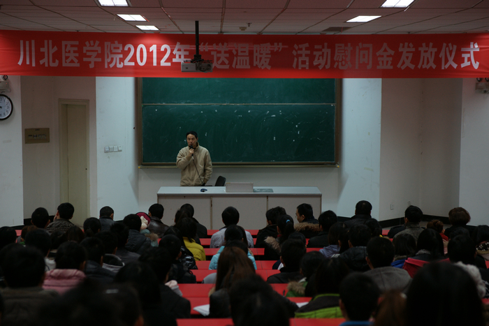 1月5日上午,学校2012年“送温暖”活动慰问金发放仪式在顺庆校区举行,向125名受助同学发放了共计5万元的慰问金。