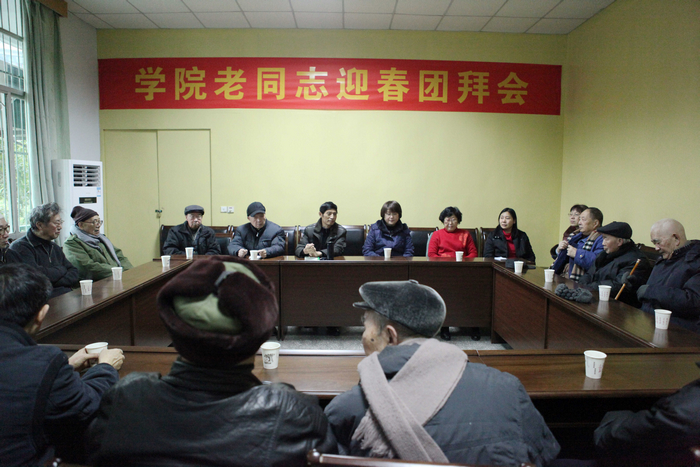 1月10日上午,学校在离退休老同志活动中心会议室举行离休干部、退休校领导、三级教授迎春团拜会,院长康健,党委副书记鄢佳程,党委、行政办公室,组织部、人事处、离退休处、离退休总支负责人参加了团拜会。