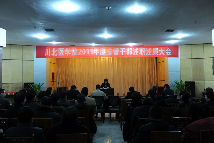 12月23日下午,我校2011年度省管干部述职述廉大会在顺庆校区科技楼工会俱乐部召开。全体校领导、党委委员、纪委委员,省、市党代表、人大代表、政协委员,各部门负责人、各党总支书记、民主党派负责人、离退休老干部代表、分工会负责人、教代会代表、专家教授代表等共60余人参加了会议。院长康健主持大会。
