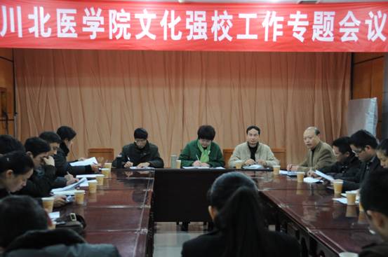 会议指出,文化强校工作要结合我校实际,以优秀传统文化为载体,抓住校园文化建设的核心,积极开展各项工作;要认真总结近年来推进文化强校建设的有效方法,完善文化强校建设工作长效机制;学校文化建设应分层进行,在整体规划的基础上,各职能部门应根据规划制订工作目标分年度完成;要高度重视人才培养质量的提高,将文化道德教育贯穿于整个教育的全过程,努力形成具有医学院校特色的校园文化。