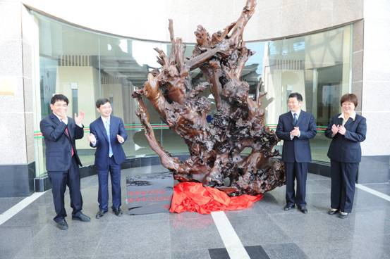 乌木根雕,本喻辟邪纳福之意。该乌木根雕大气雄浑、古朴典雅,代表市委、市政府对我校的美好祝福。