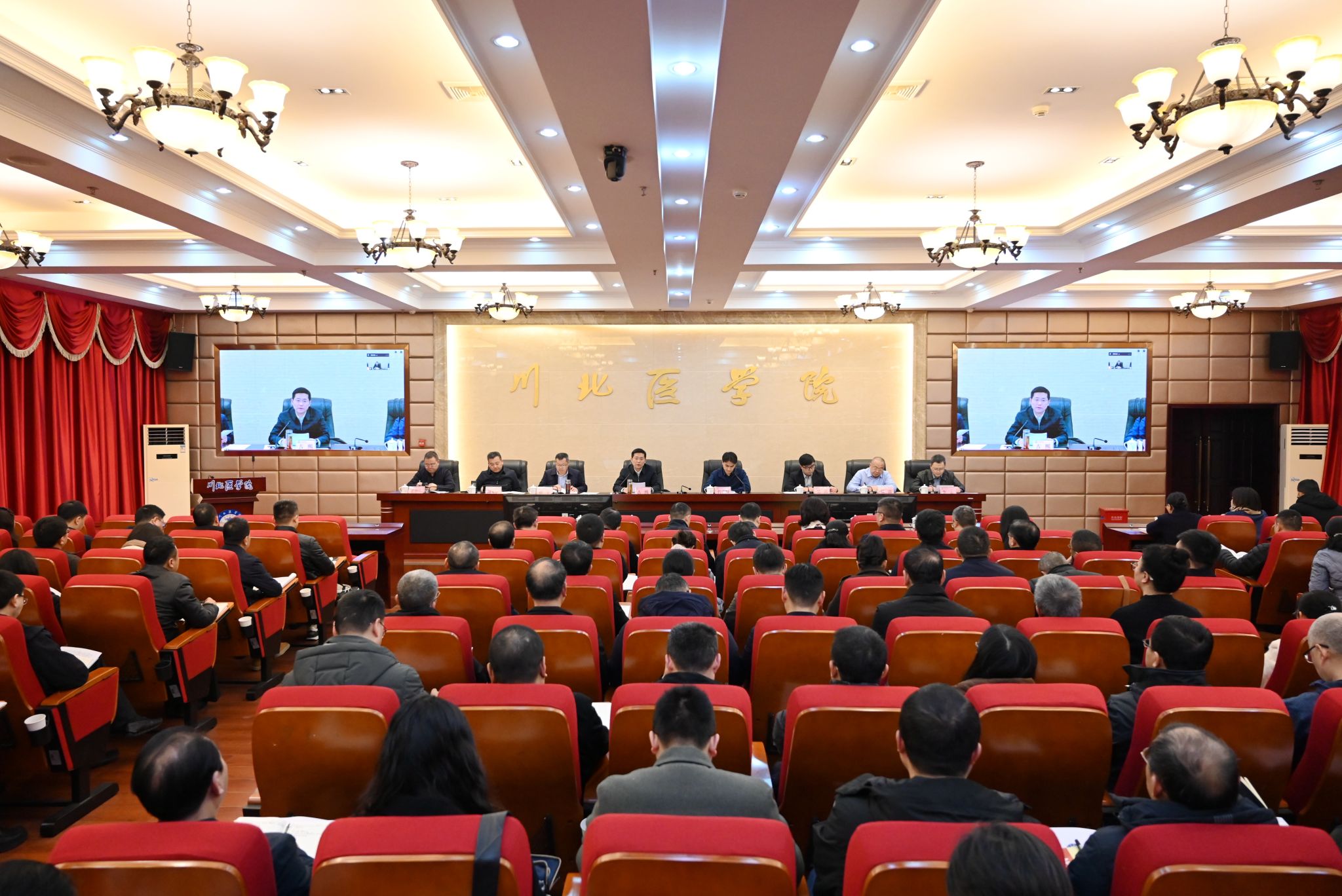 会议强调,全校上下要更加紧密地团结在以习近平同志为核心的党中央周围,锚定建设高水平医科大学目标,抖擞精神、砥砺奋进、冲刺攻坚,不怕崎岖路、走稳攻坚路、勇闯冲刺路,努力交出不负历史、不负时代、不负师生的精彩答卷。