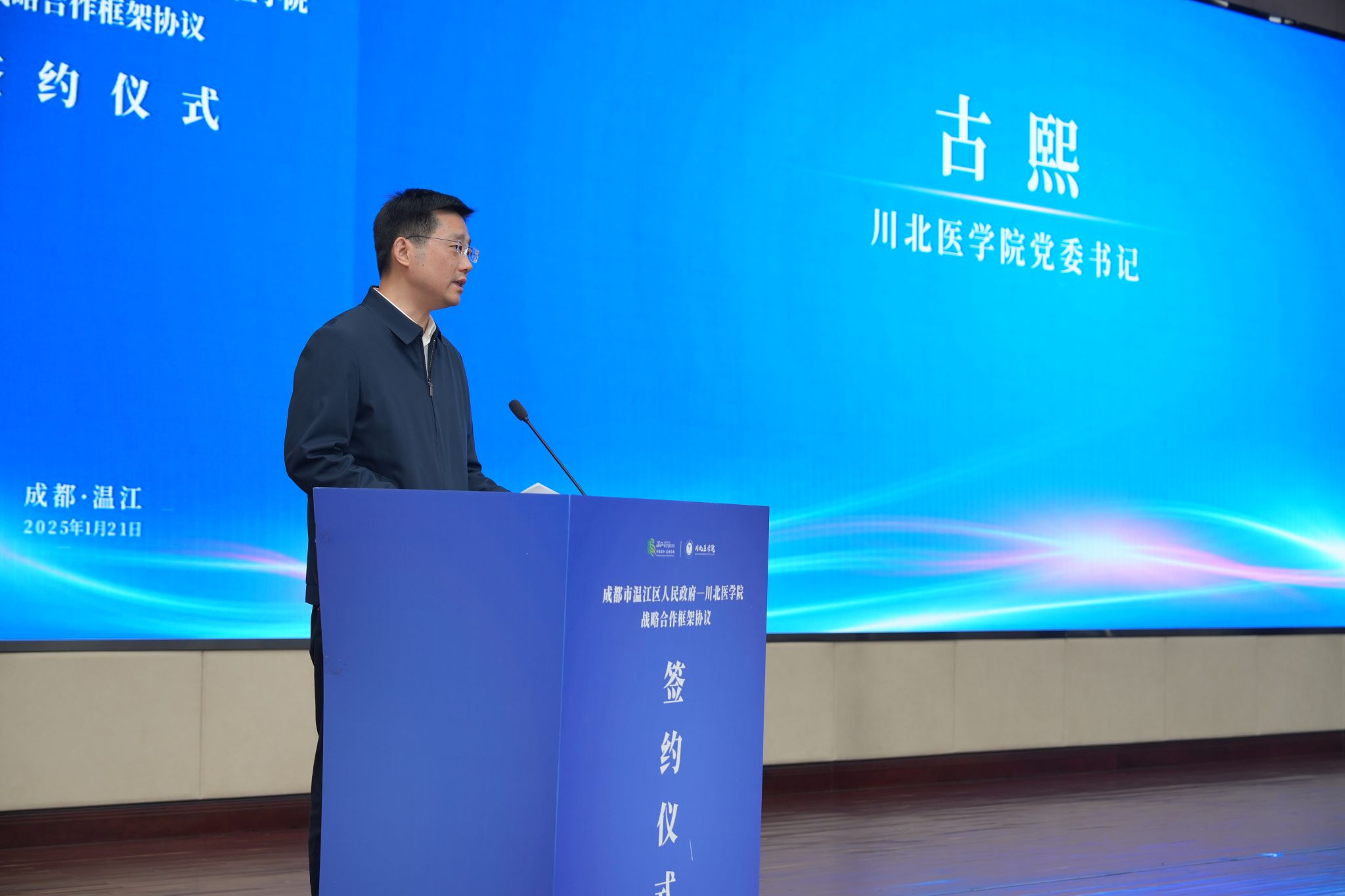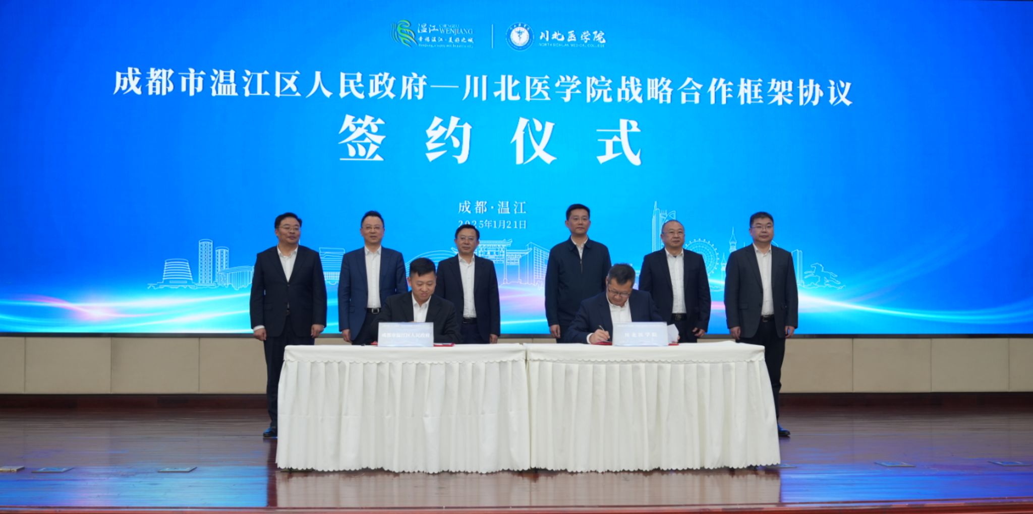 1月21日,《川北医学院 成都市温江区人民政府战略合作框架协议》签约仪式暨川北医学院——成都市温江区人民医院教学医院授牌仪式在成都市温江区举行。川北医学院党委书记古熙,温江区区委副书记、区长王军出席仪式并致辞。