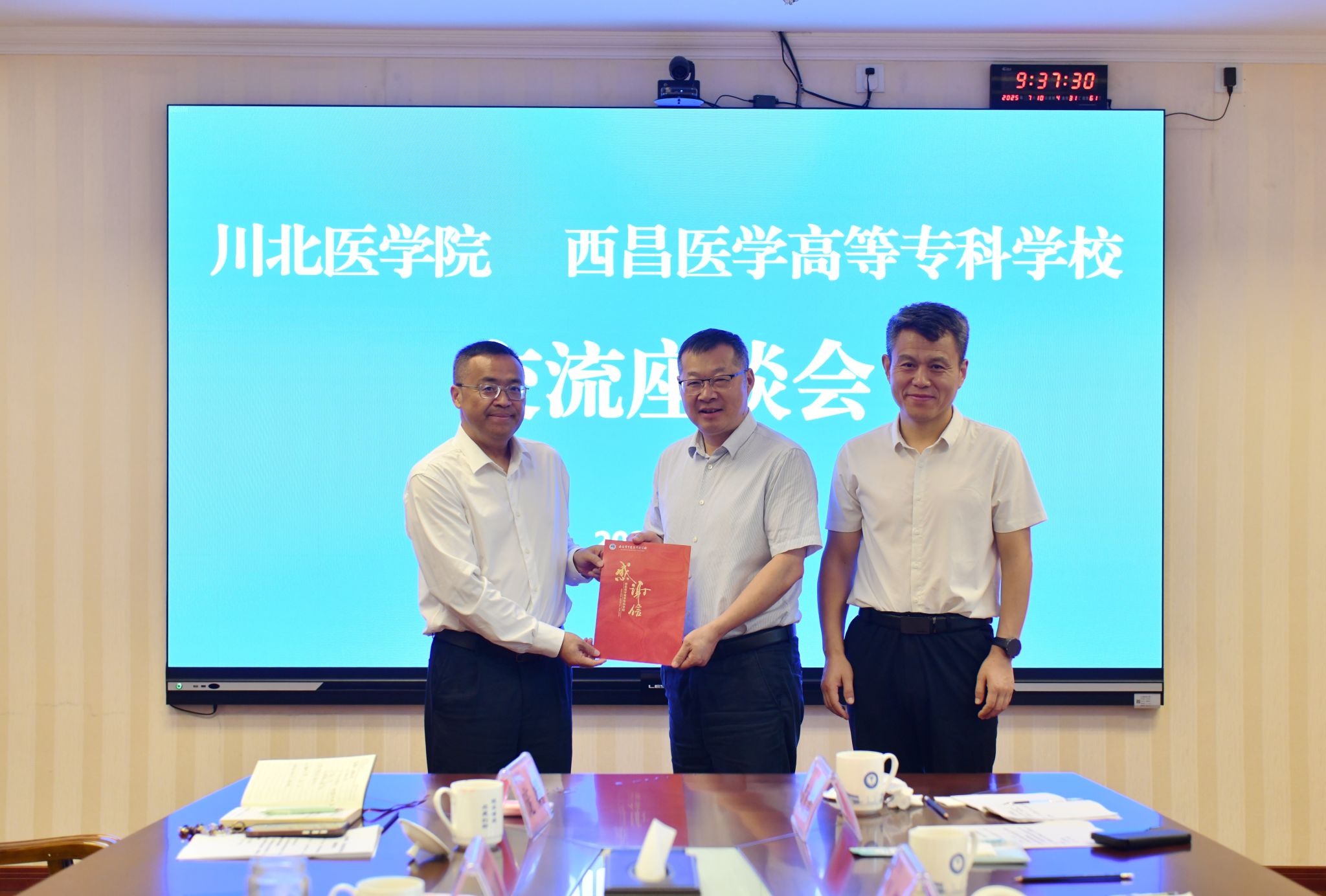会见结束后,双方举行交流座谈会,就下一步合作细节进行磋商,陈方勇代表西昌医学高等专科学校向我校赠送“感谢信”。