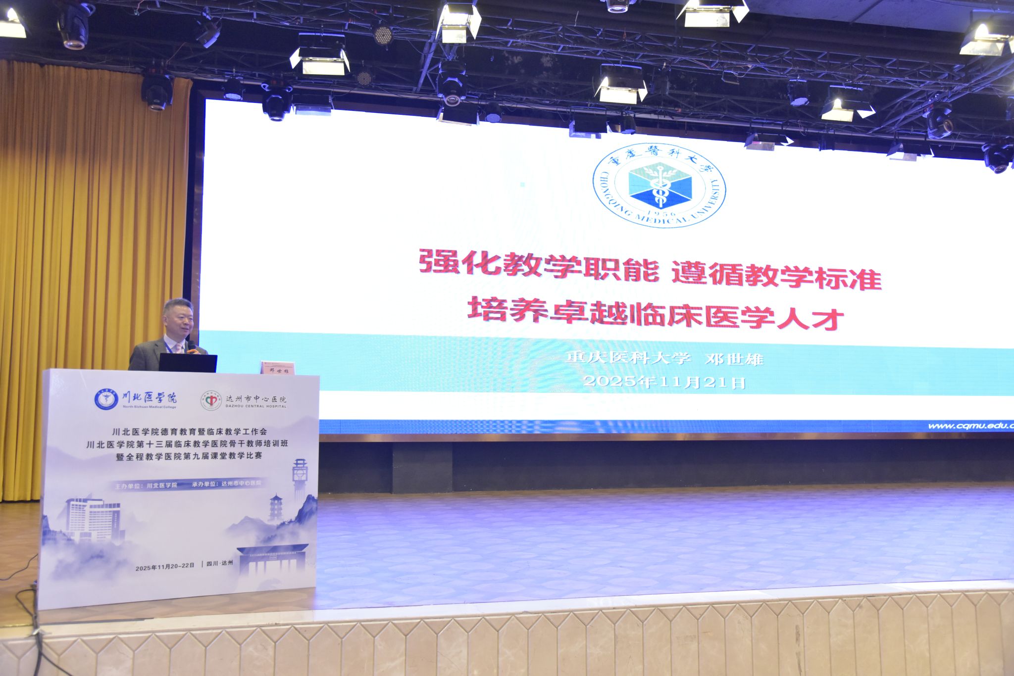 11月20日至22日,川北医学院德育教育暨临床教学工作会、第十三届临床教学医院骨干教师培训班暨全程教学医院第九届课堂教学比赛在达州市中心医院成功举办。校党委书记古熙,党委副书记、校长代荣阳出席并作专题报告。