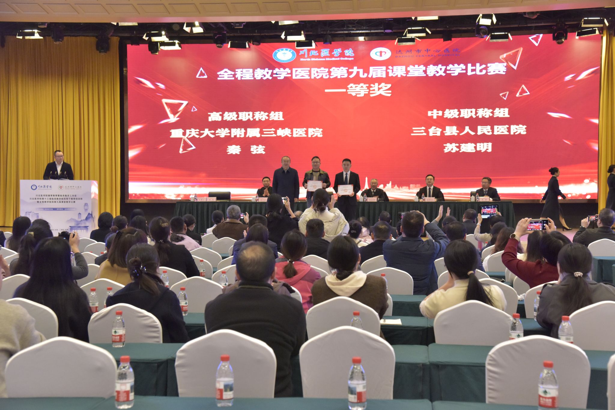 同期举办的第九届全程教学医院教学比赛,以“上好一门课”为竞赛理念,采用全国青教赛赛制,设置教学设计、课堂教学和教学反思三个环节,吸引了15家全程教学医院的28名优秀教师同台竞技,最终重庆大学附属三峡医院秦弦老师获得高级职称组一等奖,三台县人民医院苏建明老师获中级职称组一等奖。