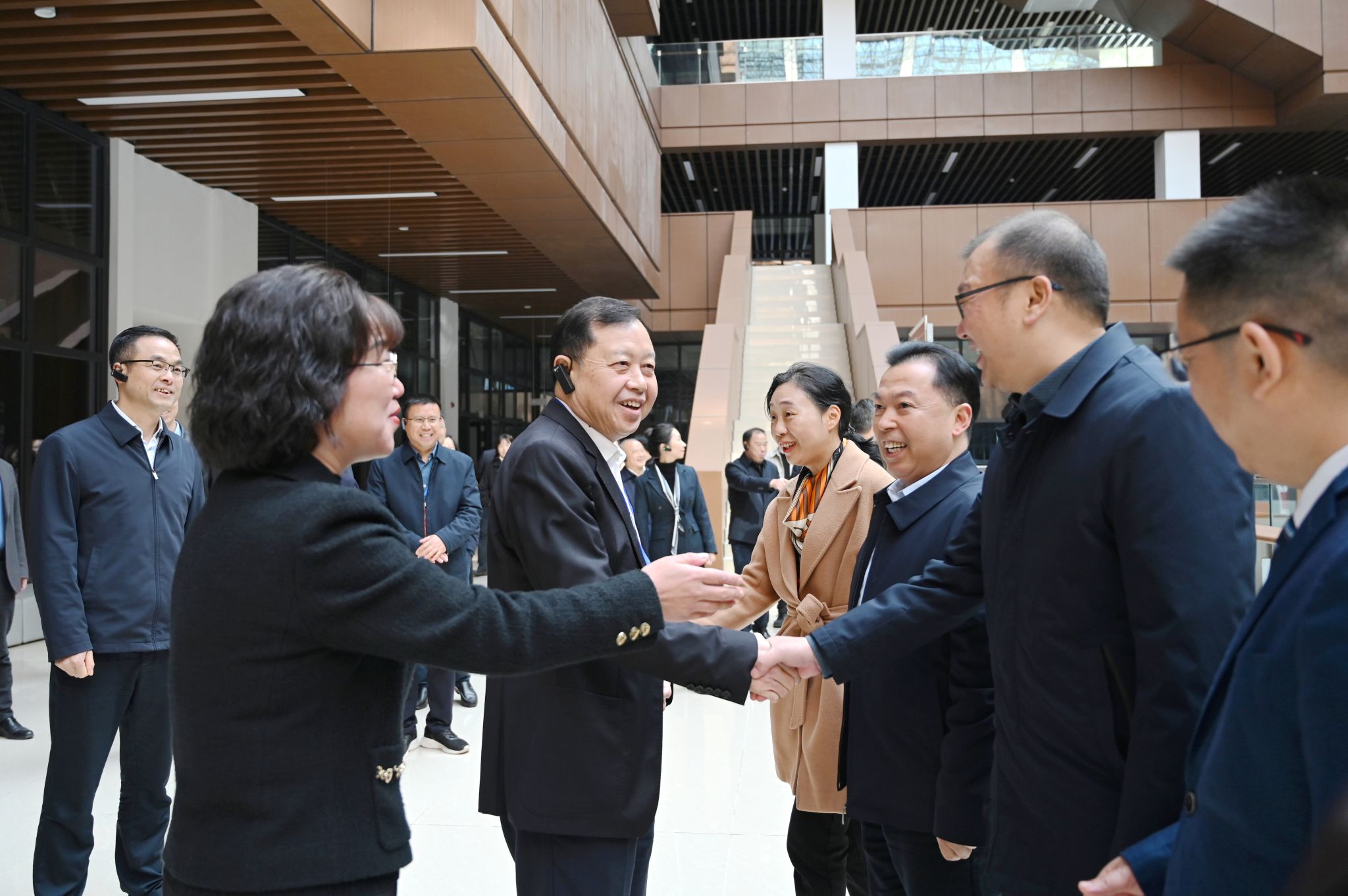 廖伦志一行先后走访智慧屏教室、校园餐厅、图书馆等,详细了解校区建设、教学保障等情况。廖伦志亲切看望我校市政协委员,鼓励委员积极建言献策。