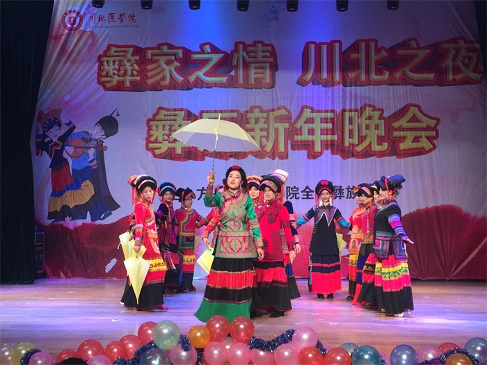 在炫目的灯光中,演员们身着色彩鲜艳、美丽大方的民族服装在舞台中翩翩起舞,拉开了晚会帷幕。舞蹈《五彩凉山》色彩艳丽的裙摆、整齐划一的步子、婀娜多姿的身段,展示了彝族舞蹈的民族元素,让现场观众留下了深刻的印象;武术协会带来了精彩的双节棍、跆拳道、武术表演,演员们英姿飒爽,气势如虹,将晚会推上高潮,现场掌声如雷;歌曲串烧表演中,演员们创新地将流行元素与彝族歌曲、服饰相结合,让观众们享受到了一场别开生面的视听盛宴。期间,身着精美彝族节日服装的演员们带着彝族佳酿走到观众席敬酒,与大家共享彝历新年的喜悦与祝福。美丽大方的藏族姑娘们带来藏舞《唐古拉风暴》,韵味十足。最后,演员们身着彝族盛装,撑着鹅黄的小伞,在舒缓、隽永的音乐旋律中为本次彝历新年晚会画上了圆满的句号。